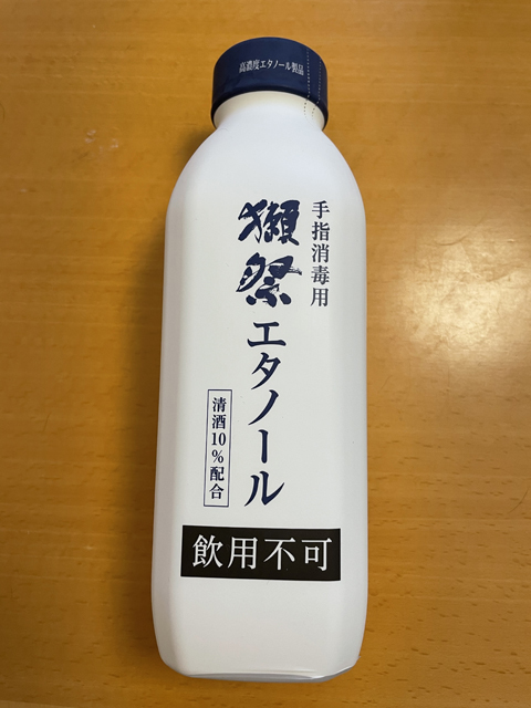 感染症対策として手指消毒用の獺祭エタノールを買ってみました。