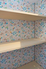 普段は見えないクローゼットの中に柄のあるクロスを使用したり、鮮やかなグリーンのクロスをアクセントにしたり。