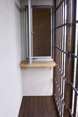 夏場直射を遮りながら、風を通す格子戸を採用。